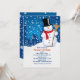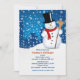 Um boneco de neve de sorriso com um nevado, fundo da arquitectura da cidade convida-o a uma celebração do inverno. Junte-se ao divertimento! Aperfeiçoe para festas natalícias, festas de aniversário e mais.