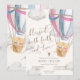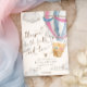 Celebre o batizado dos seus lindos gêmeos com este doce convite de batizado para gêmeos menino e menina. O design apresenta uma ilustração de um urso de pelúcia macio em um balão de ar quente, combinada com uma tipografia moderna e atemporal, tornando-o perfeito para uma celebração significativa e alegre.
