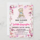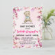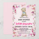 Convite Ursinho-de-pelúcia-rosa flores chás de fraldas