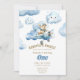 Convite à Aventura de Primeiro Aniversário do Céu de ursinho Alta Uma cena química que inclui um urso fofinho a navegar confidentemente num avião através de nuvens lisas, simbolizando a viagem do primeiro ano de uma criança. "Urso, avião, primeiro aniversário, piloto", "comemoração, aventura, céu, nuvens", "jornada, marco, Ursinho, voar, capricho", "alegria, convite, fofinho", "um ano, entusiasmo, amigos", "Família, aviação, exploração, adorável, felicidade"