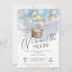 Convite Urso Balão de Ar Quente Azul Sobre Chá de fraldas