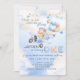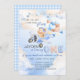 Convite Urso Bebê Castanho Azul-Pastel Cinto No Avião