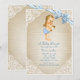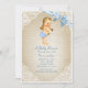 Convite Urso Branco Bebê Menino e Laço Azul em Burlap Chá