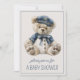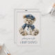 Este convite de chá de bebê para menino apresenta um adorável ursinho de bebê vestido com um casaco azul náutico e um boné combinando. Personalize a frente e o verso com a sua escolha de texto especial.