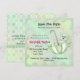 Convite de chá de bebê menina ou menino com adorável ursinho de pelúcia mint andando de guarda-chuva, pontos grandes e outros toques especiais. Personalize com suas informações.