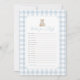 Convide amigos e familiares para preencher seus desejos para o bebê com este cartão de jogo de chá de bebê do urso de pelúcia azul xadrez elegante.