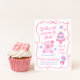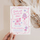 Um convite de aniversário de menina caprichosa em um tom rosa suave e estética coquette. Este design único desenhado à mão apresenta um urso de pelúcia, bolo, laços e borboletas para um tema de festa pastel e feminino. Perfeito para meninas de qualquer idade.