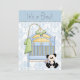 Convites de chá de bebê menino azul e damasco adoráveis. Este convite de chá de bebê menino com urso panda e pegada de bebê azul é facilmente personalizado para o seu evento, adicionando detalhes do evento, estilo de fonte, tamanho e cor da fonte e texto. Por favor, note que todos os adesivos, cartões e desenhos de convite que você encontrará no Zazzle são gráficos impressos sem joias, laços, relevos, rebaixados ou peças adicionais.