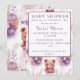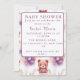 Convite Urso de pelúcia roxo e flores - Chás de Bebê