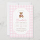 Convite de aniversário de um ano Beary Urso de pelúcia xadrez rosa