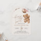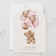 Convide amigos e família de estilo e dê o tom para o seu dia especial com este charmoso convite de aniversário. Design apresenta um ursinho de pelúcia com balões cor-de-rosa sobre fundo bege.