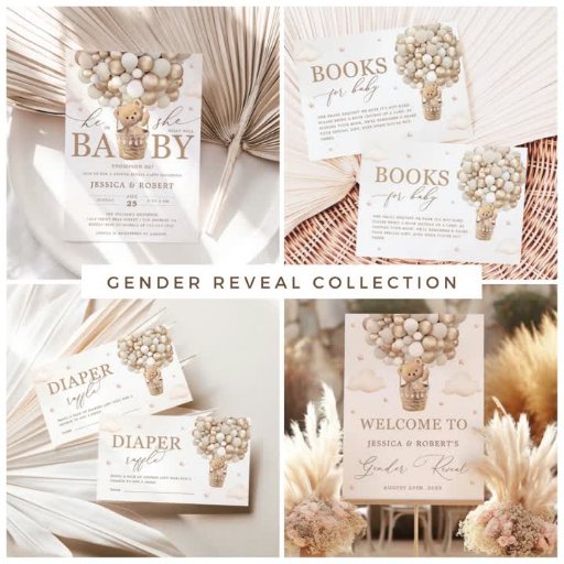 Convite Urso de Teddy com Balões Neutros Revelação de Gêne