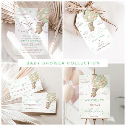 Teddy Bear with Green Balloons Baby ShowerCriado por A S