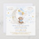 Convite Urso de Teddy na Lua Azul Balões Dourados Menino