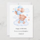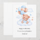 Celebrar um aniversário especial com este adorável e caprichoso cartão com um ursinho de pelúcia bonitinho flutuando entre nuvens fofinhas e segurando um buquê de balões pastéis em tons azuis, cor de pêssego e bege. O design alegre é acompanhado por detalhes lúdicos como estrelas e um pássaro encantador. Perfeito para crianças ou qualquer pessoa que ame designs doces e encantadores, este cartão é personalizado com o nome do destinatário por um toque atencioso e único.