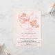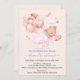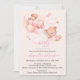 Convite Urso de Teddy Rapariga Bicho com Aquarela Rosa