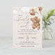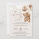 Convide amigos e família de estilo e dê o tom para seu dia especial com este charmoso convite para chás de fraldas. Design apresenta ursinho de pelúcia com balões castanhos sobre fundo bege.