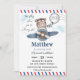 Personalize este convite de aniversário em estilo cartão-postal fofo com seus detalhes de forma fácil e rápida. Basta clicar no botão Editar Usando Ferramentas de Design para editar ainda mais o texto, a redação, o estilo da fonte, o tamanho da fonte, a cor da fonte e adicionar ou remover texto. Apresenta um urso fofo pilotando um avião azul empoeirado com um carimbo de "você está convidado" e um título "o tempo voa quando você está se divertindo". Todo o texto é editável. Personalize-o para se adequar à sua ocasião. Itens correspondentes disponíveis na loja! (c) The Happy Cat Studio