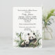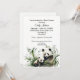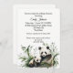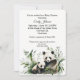 Aquarela urso panda fofo em folhas de bambu com um filhote em um fundo branco para Baby Shower. Todo o texto é editável.