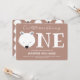 Nosso ursinho está fazendo um primeiro convite de aniversário para bebês. Este convite é castanho-claro e branco com a palavra "Um" em letras grandes, com uma ilustração do rosto de urso polar branco como primeira letra da palavra. Simplesmente, personalize este convite, adicione-o ao seu carrinho e feliz aniversário ao seu maravilhoso bebê! Urso Polar Transformando Um Animal Gestido Primeiro Convite Aniversário Design | ©Melissa Patton — Artista/Ilustrator