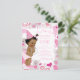 As meninas convites de festas primeiros aniversarios com adoráveis corações cor-de-rosa e ursos peludos e doce aniversariante étnico vestindo um chapéu de festa, ralando calças e pérolas em um bonito fundo rosa. Você pode personalizar facilmente o primeiro convite de aniversário desta garota adorável simplesmente adicionando seus detalhes no estilo de fonte e na cor, e o texto de sua escolha. Você também pode alterar a cor de fundo.