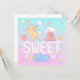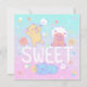 Uma bela ilustração dos ursos peludos com monstros doce de algodão fofos com o texto "SWEET"