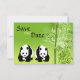 Ursos Panda e Casamento de Bambu Anúncio de Salvar a Data em Verde, Preto e Branco.