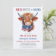 Celebrar o Dia da Independência com os nossos patriotas convites de festas de 4 de julho com uma charmosa cor d'água pintada manualmente de uma vaca em terras altas. Perfeito para amantes de fazendas e vacas, esta design artística convida a família e amigos a se juntarem às festividades com CHURRASCO, comida, diversão e fogos de artifício. Veja nossa coleção para combinar presentes, favoritos para festas e suprimentos patrióticos no dia 4 de julho. COPYRIGHT © 2021 Judy Burrows, Black Dog Art - Todos Os Direitos Reservados. Red White Moo Patriótica Highland Cow 4 De Julho Convite