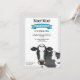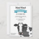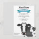 A ilustração original de uma bonita vaca a preto e branco a cores, de Destei, a olhar para o espectador com olhos castanhos. O esquema de cores geral é cinza e preto, mas há um banner azul que dá ao design um pop de cor. Personalize as áreas de texto de exemplo com os detalhes do seu evento.