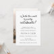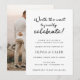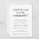 Convite de recepção de casamento com "vale a pena esperar para finalmente celebrar!" em uma fonte preta divertida. Personalize com sua foto no verso ou exclua se nenhuma foto for desejada.