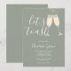 Um convite de chá de noiva elegante com taças de champanhe e nome em letra de assinatura, este convite sofisticado pode ser personalizado com suas informações em letras elegantes em um fundo verde sage. Criado por Thisisnotme©