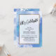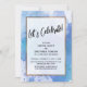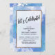 Convite Vamos Celebrar Borda Dourada Abstrato Salpico Azul