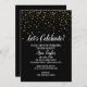 Convite Vamos Celebrar Confetes Dourados em Preto Graduaçã
