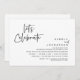 Cartão de convite de casamento intimista com tema de escrita preta moderna (Vamos Celebrar). É perfeito para sua recepção de casamento intimista / festa de celebração pós-casamento. Adicione seus detalhes em fonte / letra preta correspondente.