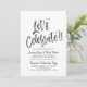 Depois do grande dia e da troca de alianças, convide seus convidados mais honrados para uma celebração. Este convite apresenta as palavras "Vamos Celebrar" em letras cursivas sofisticadas. Ao lado, há um par de alianças de casamento. Abaixo deste gráfico único, há um espaço para suas próprias palavras e informações para o seu evento pós-casamento.