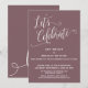 Este cartão simples e elegante foi projetado para convidar amigos e familiares para o seu casamento ou festa realizada algum tempo após a cerimônia de casamento em si. A base é um fundo sólido - um rosa mauve escuro - que pode ser alterado para qualquer cor ou tonalidade que desejar. Usando uma fonte de letra cursiva moderna e arredondada, criei uma sobreposição gráfica de tipografia que diz "Vamos Celebrar" com espirais e curvas extravagantes. A mesma fonte foi usada para criar a palavra "amor", que foi colocada, bem grande, no verso. Use os campos de modelo fornecidos para atualizar o design. Se desejar personalizar ainda mais, movendo quaisquer detalhes para outro lugar, alterando as fontes ou tamanhos, basta clicar no link fornecido e editar o design como desejar. Adicionei todas as camadas separadamente e elas estão desbloqueadas para lhe dar total controle sobre o design. //