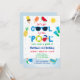 Este convite de aniversário apresenta ilustrações coloridas adoráveis de verão.