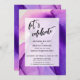 Esta distinção de convites deve-se à fonte moderna, escrita à mão, utilizada para compor a frase "comemoração do vamos" e a imagem de fundo vívida em tons de roxo. Este abstrato de "líquido" traça a fumaça e a aquarela com linhas sobrepostas e desaparecendo em novas direções. Use os campos modelo para adicionar seus detalhes pessoais e tornar este design único e moderno seu próprio. Esta design é perfeita para a sua celebração após o casamento, anúncio de elopeamento ou festa de casamento só de recepção. Versátil o suficiente, também, para que você possa mudar a redação e usá-la para um aniversário, graduação, aposentadoria, noivado ou qualquer outro evento especial digno de ser enviado convites em papel! 100 //