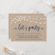 Lindas Luzes de Corda de Fazenda Rústica Moderna e Linda, fonte de letra em azul marinho em fundo de papel kraft, Anúncio de Fuga de Casamento, cartão de convite (Vamos Festejar). Isto é perfeito para a recepção do seu casamento e festa de celebração pós-casamento. Adicione seus detalhes na fonte / letra correspondente.