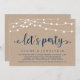 Lindas Luzes de Corda de Fazenda Rústica Moderna e Bonita, fonte de letra azul-marinho em Fundo de Papel Kraft, Anúncio de Casamento Furtivo, cartão de convite (Vamos Festejar). Isto é perfeito para a recepção do seu casamento e festa de celebração pós-casamento. Adicione seus detalhes na fonte / letra correspondente.
