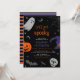 Vamos fica assustado no Dia das Bruxas qualquer convite de aniversário etário. Design moderno no Halloween para uma festa espetacular! Este convite de aniversário apresenta teia de aranha, fantasma, chapéu de bruxo, abóbora, morcegos, crânio, estrelas e lua crescente. Este convite é neutro em relação ao gênero - excelente para meninos e meninas!