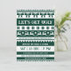 Esta design de Natal de suéter feia apresenta o texto 'Vamos fica feio' e tem um padrão de maldição feio em verde escuro e branco com arcos, renas e flocos de neve. Você pode personalizar todos os detalhes para se adequar ao seu evento. Na parte de trás está um divertido design de padrão de blusões feias ilustradas. Veja toda a coleção correspondente. Toda a trabalho de arte é ilustrada e protegida por direitos autorais por Kaitlyn Thomas.