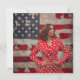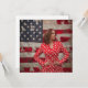 A imagem mostra uma mulher confiante em pé. um olhar de Kamala Harris em frente a uma grande bandeira americana. Ela está vestida com uma bolinhas vermelha impressionante, que adiciona um toque vibrante e na moda à sua aparência. Suas mãos são colocadas em suas quadris, e ela esvoaçou para o lado com uma expressão composta e determinada. A bandeira ao fundo, com suas estrelas e listras, fornece um pano de fundo patriótico, enfatizando temas de orgulho e liderança nacional. A composição geral da imagem transmite força, confiança e um sentido de propósito.