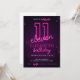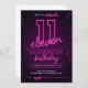 Projetado para nossos Convites de Aniversário de Neon Rosa, este Cartão de Convite personalizável apresenta texto colorido neon, decorações de neon e fundo roxo. Itens correspondentes disponíveis.