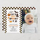 O aniversário do Dia das Bruxas "Vamos Sapatinho" com morcegos voadores, abóboras sorridentes, aranhas, teias de aranha e fantasma do Dia das Bruxas em cor laranja e marrom. Perfeito para uma festa de aniversário de criança de Halloween assustadora e fofa.