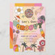 Este convite de aniversário de "vamos fica ranzinza" apresenta um fundo de cor arco-íris com uma flor sorridente, bola espelhada, mão, tubo inflamável do flamingo, coquetel tropical, picolé, óculos escuros, sigla de paz, bola de praia, arco-íris e palmeiras. O verso apresenta um fundo de cor arco-íris. Personalize-o para as suas necessidades. Você pode encontrar produtos correspondentes na minha loja.