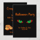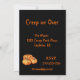 Os olhos estão assustados com um pequeno toque de abóbora nas costas. Preto com informações de RSVP de texto laranja.