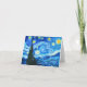 Cartão com a pintura a óleo de Vincent van Gogh na Noite Estrelada (1889). Inspirada pela sua estadia num asilo, a arte representa uma aldeia debaixo de um céu noturno de lua azul e amarela e estrelas. Um presente de excelente para fãs do Poste-impressionismo e da arte holandesa.