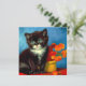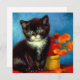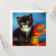Cartão com um lindo gato de smoking Van Gogh! Esta pequena gatinho se posiciona ao lado de uma cesta de flores laranja sobre uma mesa vermelha. Um presente de excelente para amantes de gatos e colecionadores de arte holandeses!