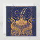 Convite Vaso Antigo,Golfinhos,Ouro,Monograma Azul-Navy